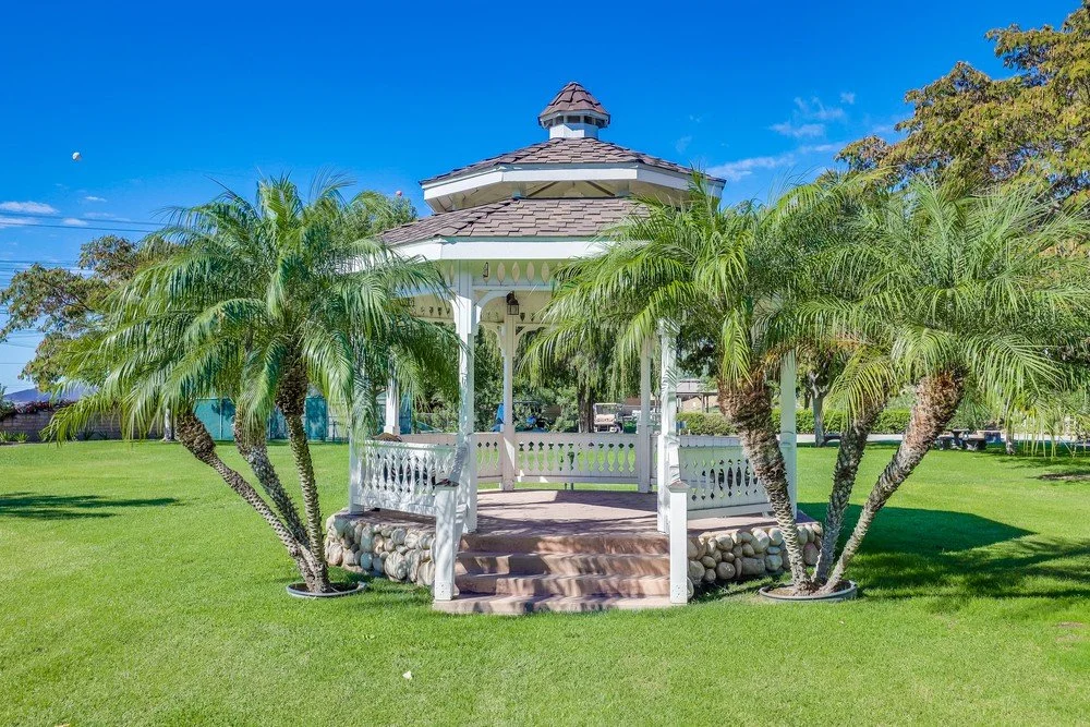 The park features many amenities, including a huge clubhouse complex that features a sparkling pool, spa, sauna, covered shuffleboard courts, billiards and game room, library, a craft center with kilns plus a large ballroom with the latest kitchen facilities for the many activities presented by an ambitious social committee.